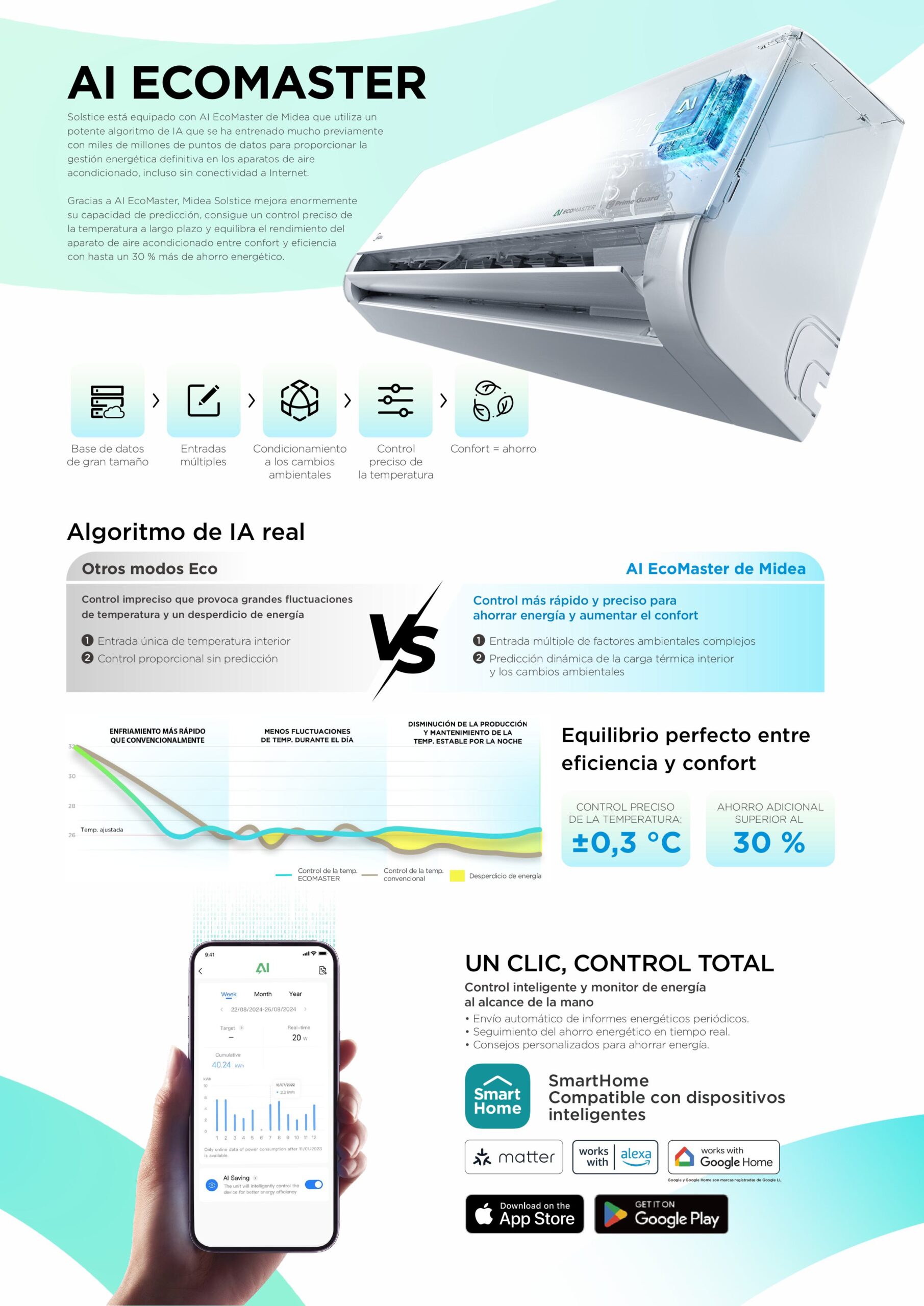 Solstice está equipado con AI EcoMaster de Midea que utiliza un
